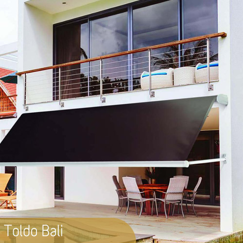De fácil manuseio, o Toldo Bali possui braços pivotantes que proporcionam a tensão do tecido e estabilidade da barra frontal contra pequenas correntes de ar.